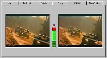 The Preview tab allows you to preview the progress of the RM conversion. The media file being converted is shown in the monitor on the left and the RM file being created is shown on the right. An LED display lets you verify the audio level (if audio is included in the conversion). Note that this is the only instance in which you will be able to view the RM file in Incite Media Assistant. After conversion you will need RealPlayer to view the file.