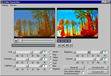 The Color Correction window lets you create changes in hue, saturation, lightness, brightness and contrast for a single media file or groups of media files. You can work on the master color values or on each separate color range (for more details, see 3.11 Color Correction & Conversion).